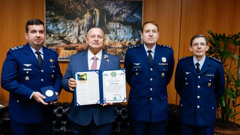 O comandante da Base Aérea de Salvador, coronel-aviador Vinicius Guimarães Nogueira, entregou pessoalmente ao presidente Adolfo Menezes a Medalha do Mérito Santos Dumont, que lhe fora outorgada pela Força Aérea Brasileira. O ato solene ocorreu no gabinete da Presidência, às 14h20 desta quinta-feira (23), momentos antes da sessão especial que comemorou os 150 de nascimento de Santos Dumont, patrono da FAB, proposta pelo deputado José de Arimateia (Republicanos).