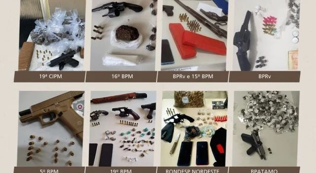 A Polícia Militar da Bahia realizou na sexta-feira (20) a 14ª edição da Operação Força Total nos 417 municípios baianos, com um total de 35 armas de fogo apreendidas, um recorde em relação às edições anteriores de 2023. Em relação às ocorrências com apreensões de drogas, a mais recente Força Total contabilizou 184 ocorrências.