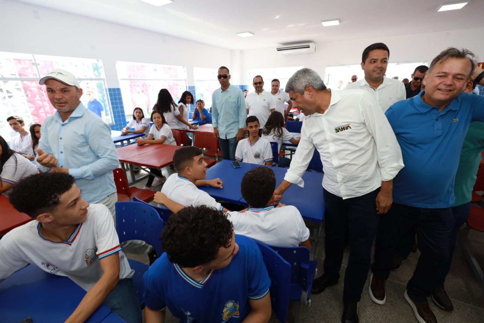 Ainda em Uauá, o governador participou da inauguração da escola municipal, localizada no bairro Mãe Rainha, e entregou um ônibus escolar rural, com o intuito de facilitar o acesso dos alunos da região à educação.