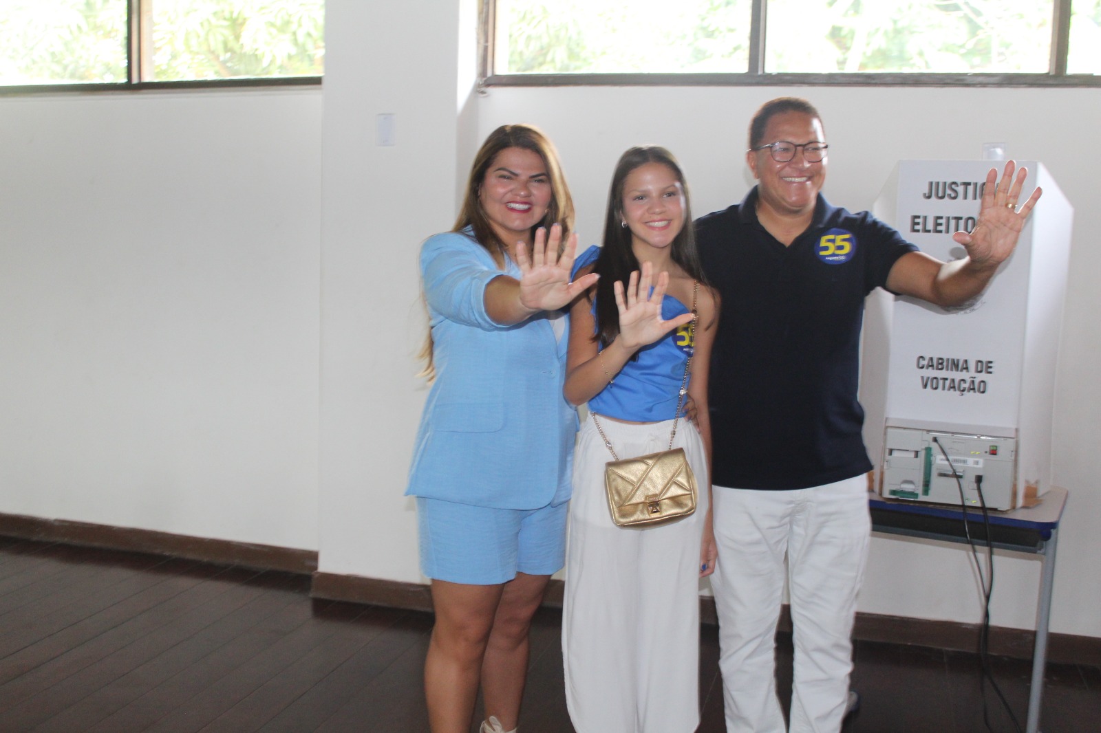 Na seção eleitoral, o candidato da coligação Itabuna não pode parar, saudou os mesários e fiscais e se dirigiu à cabine de votação. Depois de votar, ao lado da primeira-dama Andreia Castro e da filha Melissa, fizeram o 55 com as mãos, número do candidato e gesto que marcou a campanha.