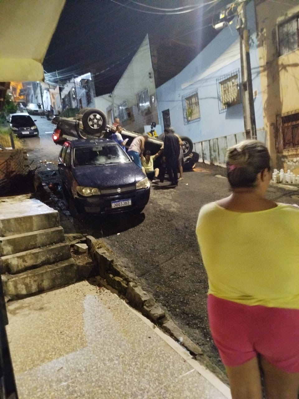 De acordo com testemunhas, o condutor tentou controlar o veículo, mas não conseguiu evitar que o carro descesse em marcha ré. O veículo colidiu com uma casa abandonada antes de atingir outro carro estacionado, resultando no capotamento do veículo.