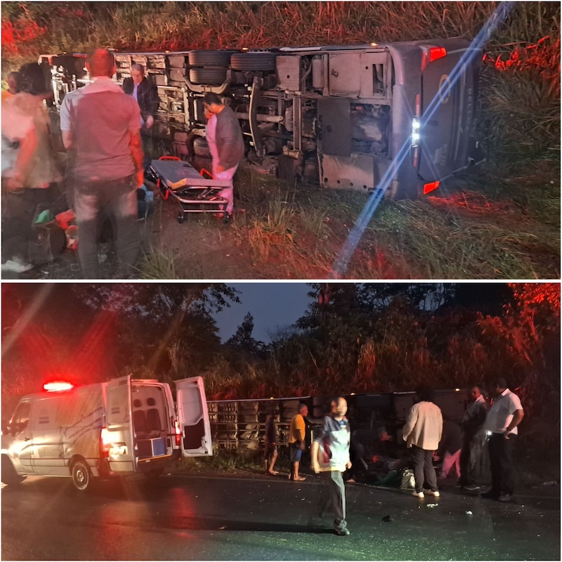 Ônibus tomba em Ibirataia e deixa dois mortos