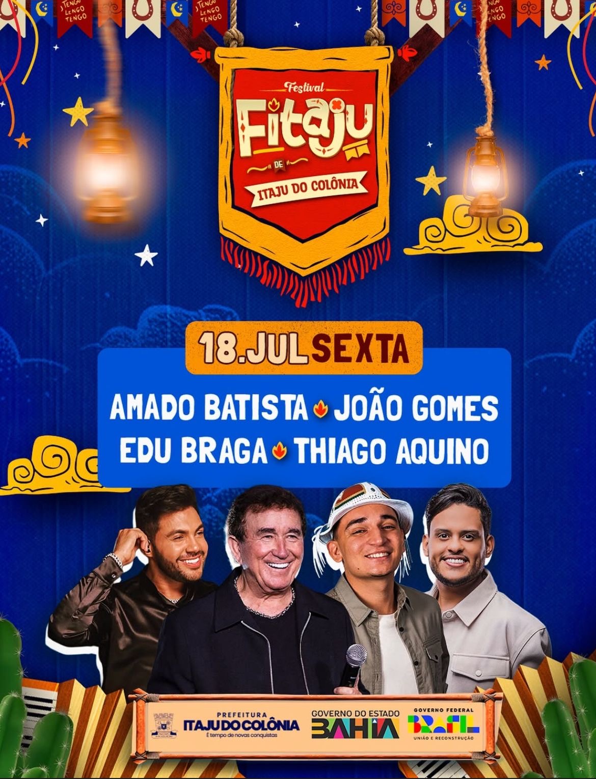 Sexta-feira (18): Amado Batista, João Gomes, Edu Braga e Thiago Aquino;