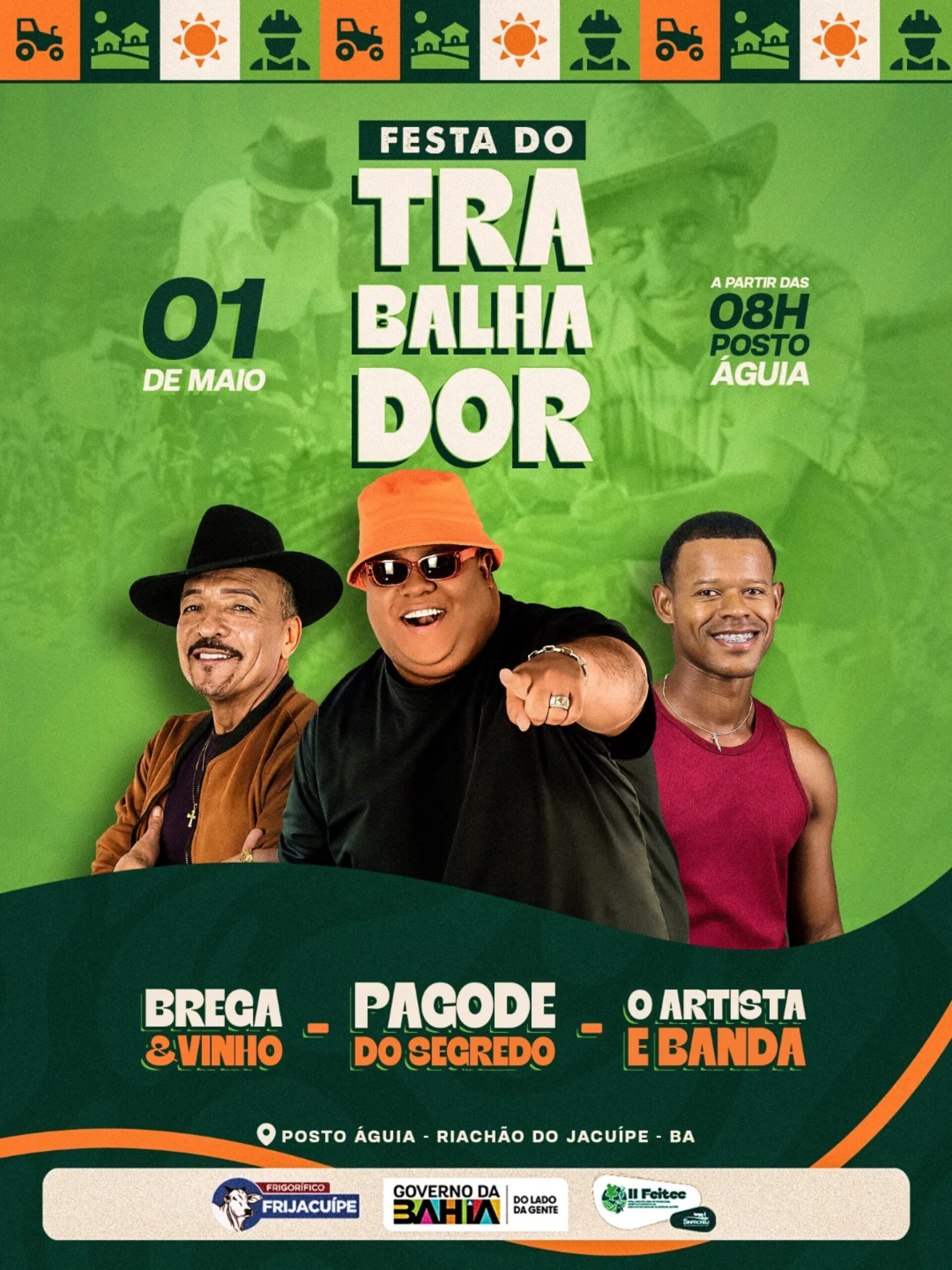 No próximo dia 1º de maio, data em que se celebra o Dia do Trabalhador, o SINPRORBJ promoverá um grande evento festivo em homenagem aos trabalhadores da região. A programação terá início às 08h, no Posto Águia, em Riachão do Jacuípe (BA), reunindo música, confraternização e reconhecimento àqueles que contribuem diariamente para o desenvolvimento do campo e da economia local.